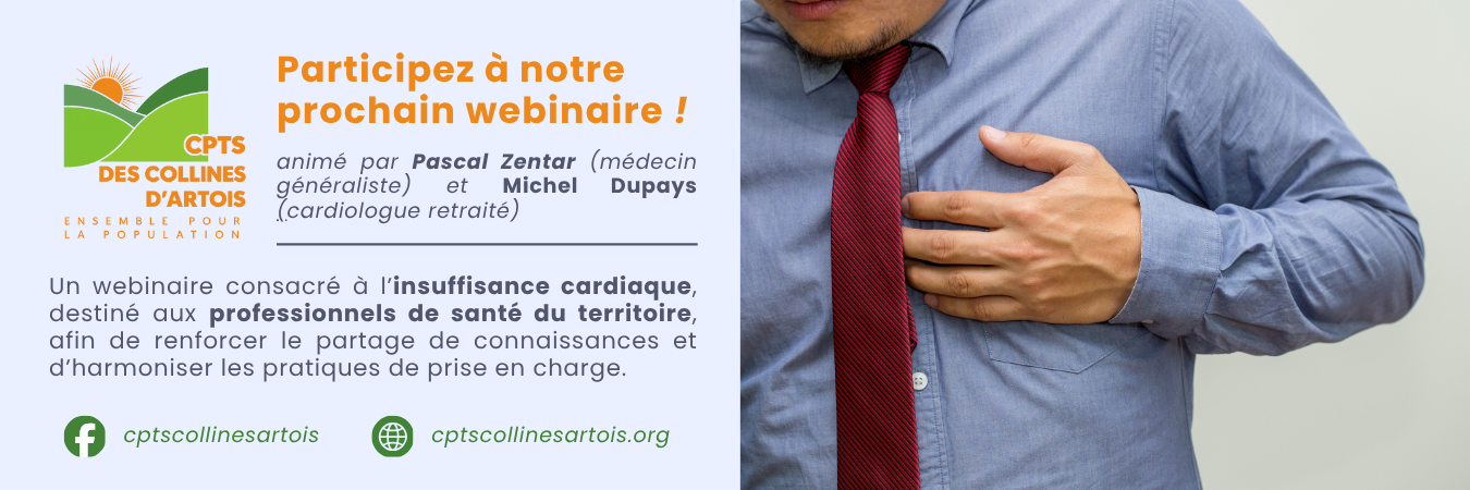 Ce webinaire sera animé par le Dr Michel DUPAYS, cardiologue retraité ainsi que par le Dr Pascal ZENTAR, médecin généraliste et Président de la CPTS.