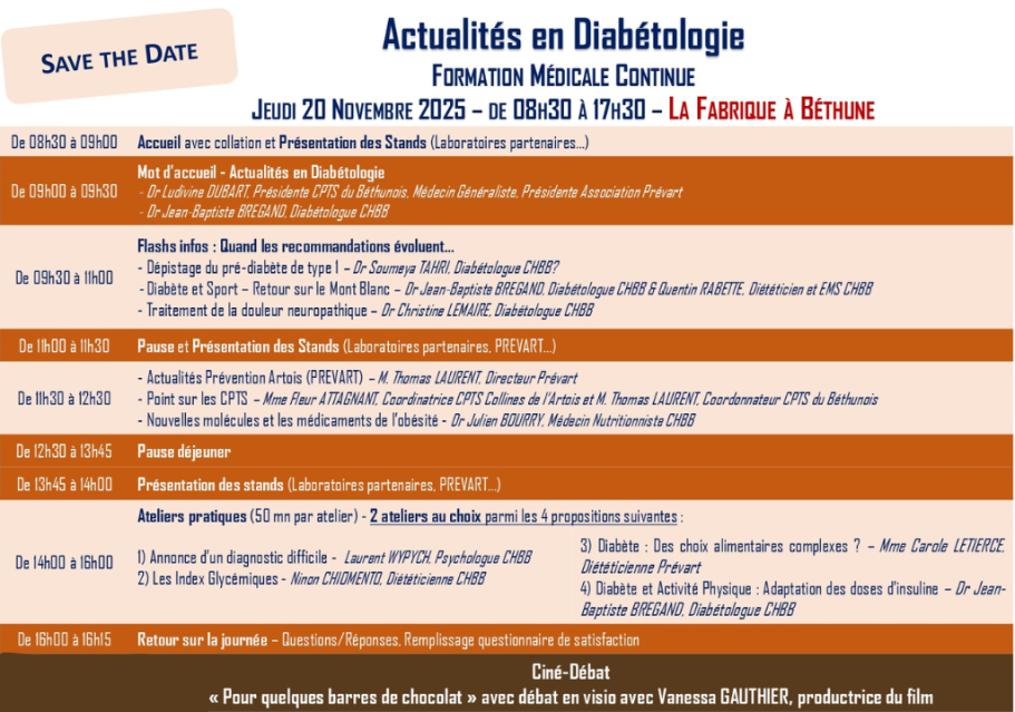 Le Jeudi 20 novembre 2025, de 08h30 à 17h30 à La Fabrique à Béthune, nous vous proposons une journée de formation médicale continue organisé avec des partenaires locaux :