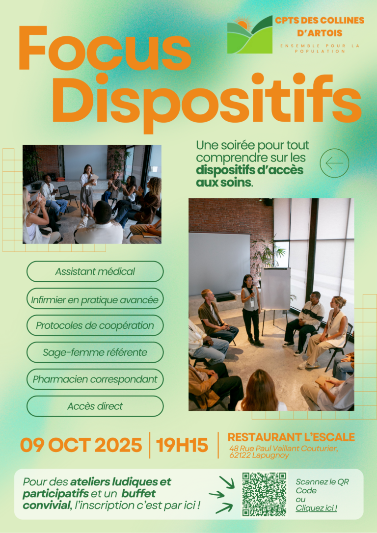 Pour vous inscrire à cette journée, rapprochez vous de la coordination de la CPTS des Collines d'Artois !